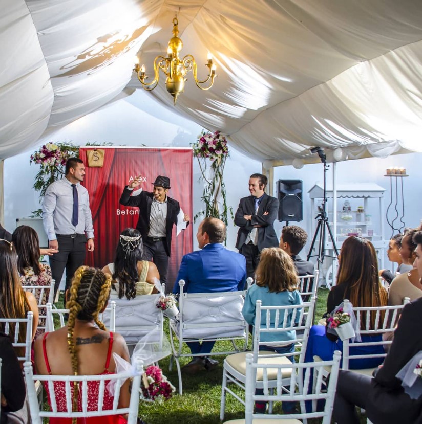 En un show divertido y personalizado, se hace participar a algunos invitados junto con los novios. Se presenta una rutina de 20 o 40 minutos llena de humor, intriga e ilusión.